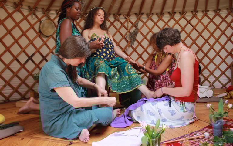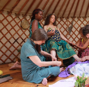Souvent la célébration comprend des chants, des cercles de parole, des massages, se faire belle, confectionner un bijou ensembles. Moi et vos amie.s concoctons ce moment rien que pour vous!