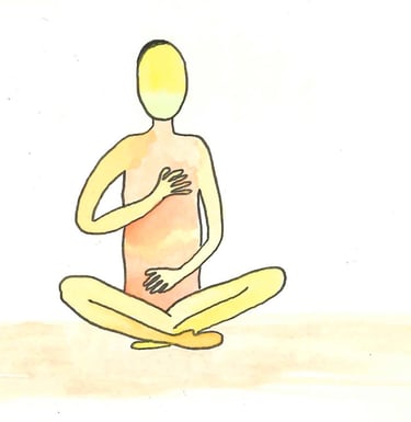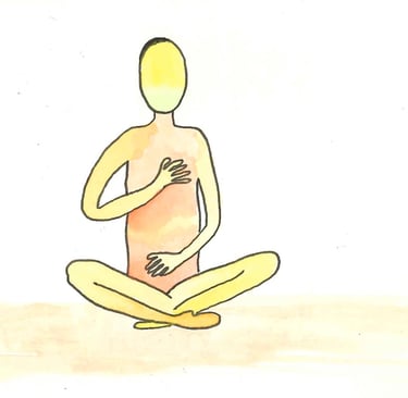 First exercise can be practiced sitting, standing or lying down. Have one hand on your uterus, and one hand on your heart. Breathe there. You can focus on feelings on your body, and on the connection between your hands. It might be a time to gently talk to your body or your baby.